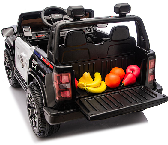 BATTERY 12V7AH,MOTOR 12V550#*2( 24V7AH,MOTOR 24V550#*4 ), FRONT LIGHT, SEARCH LIGHT, MUSIC, 2.4G R/C, VOLUME CONTROL MUSIC PLAYER(WITH SPINNING BUTTON, POWER DISPLAY, BLUETOOTH), INDEPENDENT LIGHT SWITCH, TWO-POINTS SAFTY BELT*2,3 SPEEDS WITH R/C FUNCTION, DOUBLE DOORS, TWO SEATS, INDEPENDENT HIGH & LOW SPEED SWITCH, BACK WITH STORAGE TRUNK